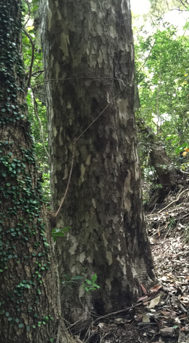 樹木は生長するにしたがって、古い樹皮が割れたりはがれたりして幹に模様が生まれます。この模様は、種ごとにある程度決まっており、樹木の見分けに利用することができます。(平成27年度企画展「雁回山、植物巡り」展示解説より)